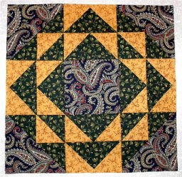 placing a Color 3 2-1/2" square atop one end of a Color 2 rectangle, right
