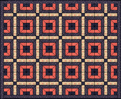 rectangles of sashing tan, and one 2-1/2" square of dark navy.